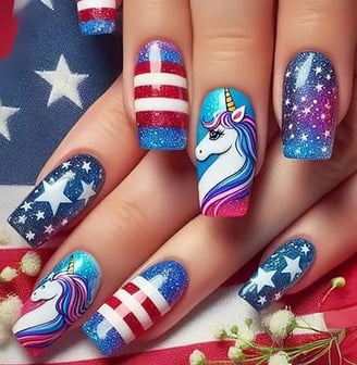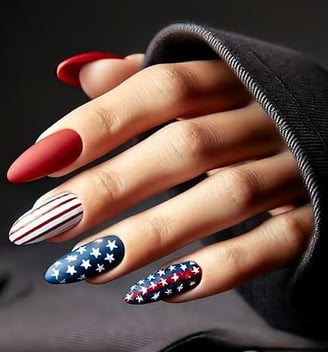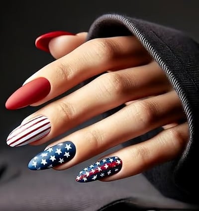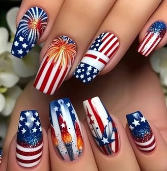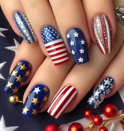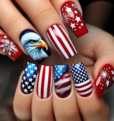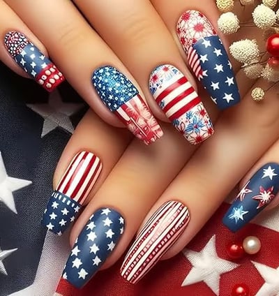 Independence Day Press on Nails Medium Coffin Fake Nails with Stars Designs 4th of July Holiday False Nails Patriotic Acrylic Nails Full Cover Glue on Nails USA Flag Stick on Nails for Women 24Pcs