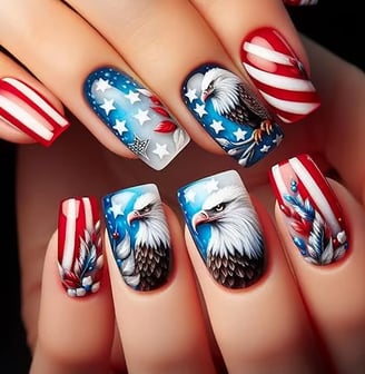 Short Press on Nails Square Owl Fake Nails Independence Day Nails Press ons Full Cover Glossy Stick on Nails with Stripe Designs Independence Day Glue on Nails for Women 24Pcs